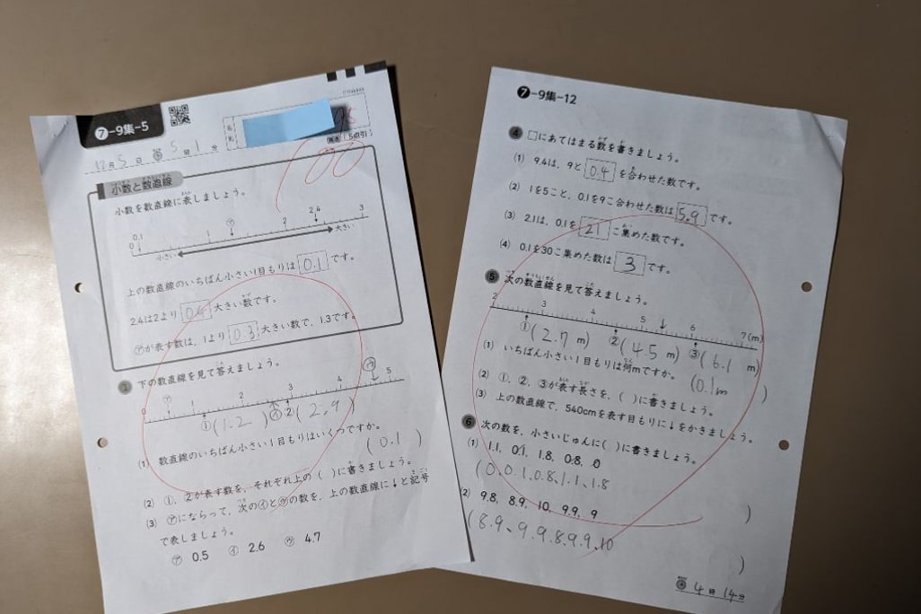 当教室には ・元気にあいさつをする。 ・めんどくさいと言わない。 という二つの約束事が貼ってあります。 子供達は、ふっと「めんどくさい!」と言ってしまい、 あわてて「なんて、言わないよ!」などど言ってます。 名前や時刻を書くのが面倒だったり、計算や囲みを読むのが面倒だったり。 でも、それが面倒と思わず、当たり前のようにできている子は 着実に学力も伸びていきます。 子供の真の学力を養うために、無学年方式でそれぞれの子供に合った 教材に取り組むことで、着実に学習の基礎を固めていきましょう。 焦って該当学年にこだわっても却って遠回りになってしまうことがあります。