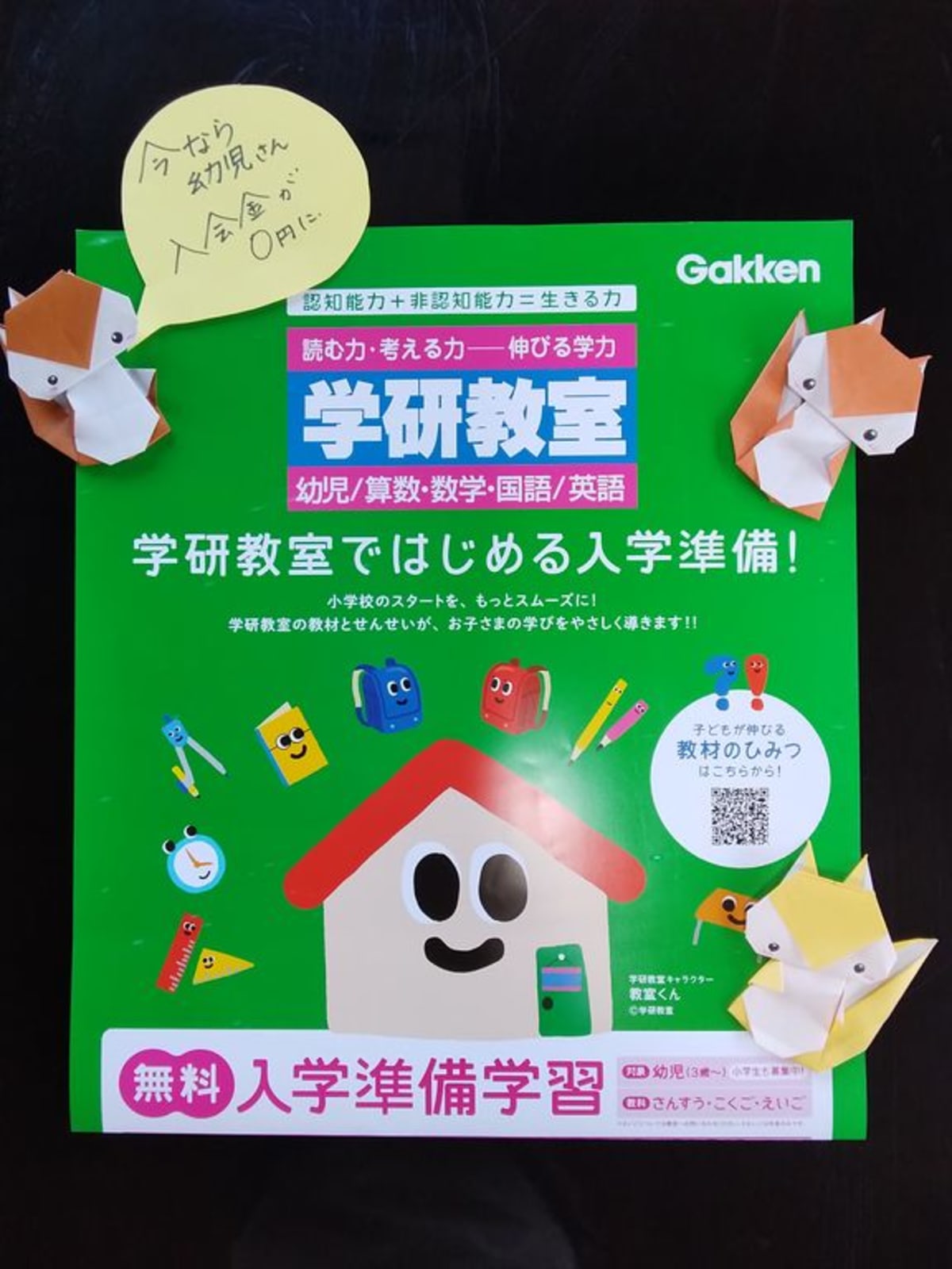 はじめての塾は学研教室 学研教室は、教科書の内容を全て学習するので、学校の授業がよくわかります。お子様の学力に合わせた個別カリキュラムなので、同学年でも取り組む教材は、違います。体調を崩して学校を休んだら、算数がわからなくなった。わからないと勉強したくない、勉強が嫌いになってしまいます。そうなる前に学研教室で勉強しませんか? 現在無料体験実施中です。いつでも見学できます。まずは、気軽にお電話ください。 |