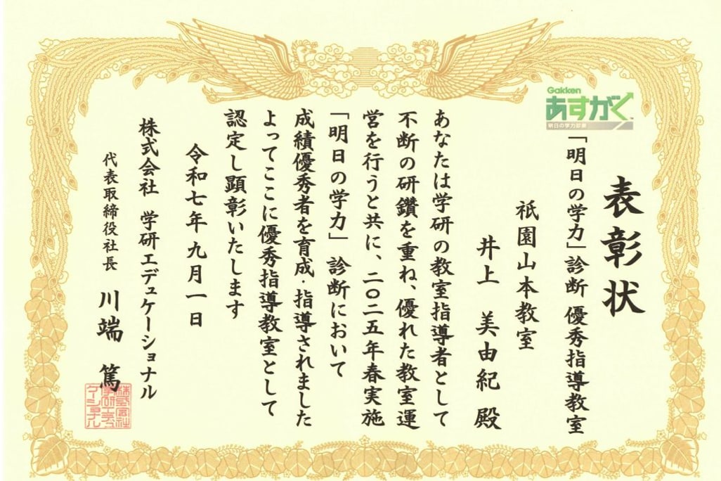 「認知能力+非認知能力=生きる力」を育む学研教室 未来を生き抜く力を子どもたちに! わくわく秋のイベント! イベント① 幼児入会金0円キャンペーン! 5,500円の入会金が0円に! 12/16まで! イベント② 無料体験学習受付中! 小学生・中学生 イベント③ 入学準備学習受付中! 幼児対象! 無料です! イベント④ W(ダブル)紹介キャンペーン! オリジナルスティック消しゴムプレゼント! 指導歴21年の指導者がお待ちしています。 小学生コースに空きがあります。 お申し込みは黄色ボタンから! 携帯電話へのお問い合わせは、ショートメールでお願いします。 木・土曜日は口田教室、月・水曜日は祇園山本教室で指導しています。 |