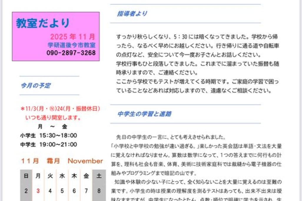 | 教室から一言 |