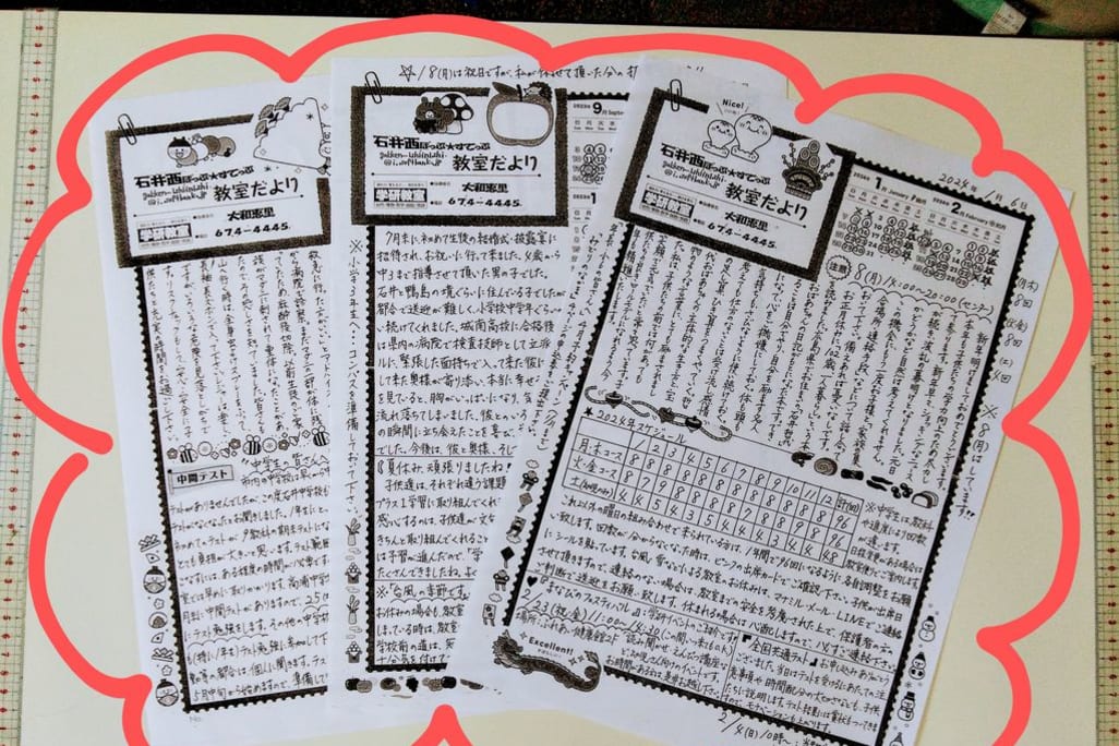 秋は、入学準備にピッタリな季節です。ただいま幼児さんは、入会金0円です! 運動会も終わり、学びの秋も一層深まるこの頃です。私は当教室を子ども達にとって、安心安全な場所にしたいと思っています。ほとんどの子ども達とは週2回、長い子は10年もの間毎週私と顔を合わせます。毎週見ているので、小さな変化に気付きます。毎週見ているからこそ少しの変化を違和感として気付くのかもしれません。そして、安心安全な場所だから間違えることも怖くなくなるのです。そうして子どもたちは、ゆっくり自分のペースで伸びていきます。無料体験はいつでもしておりますので、お気軽にご連絡下さい。幼児さんは入会金0円ですので、是非この機会にご検討下さいね。 |