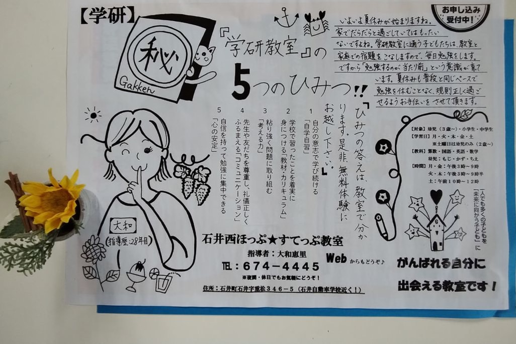 | 教室名 | 学研教室 学研石井西ほっぷすてっぷ教室 |