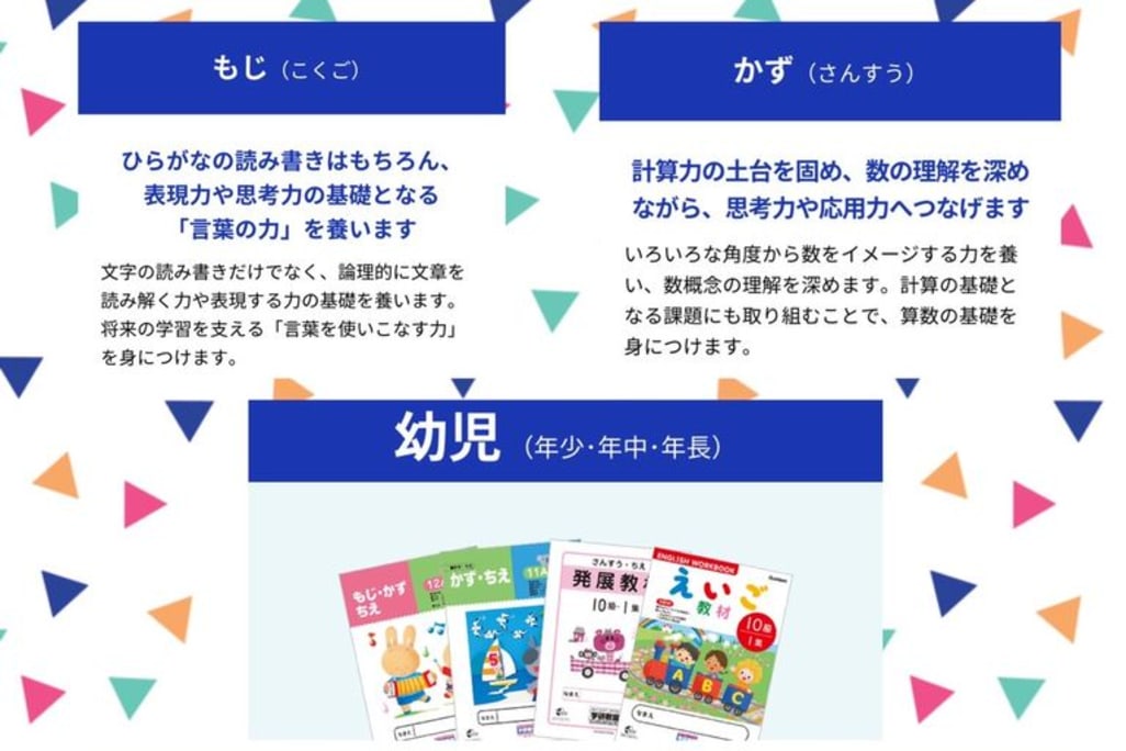グローバル化や技術進歩が加速するなか、今の小・中学生には将来役立つ力として、 【思考力・判断力・表現力】が必要と言われています。 学研教室のオリジナル教材算数では、筋道を立てて考える力を養い、国語では、文章を読み取る力や書く力を 身につけます。 この2教科を同時学習することで「論理的思考力・読解力・応用力・表現力」を バランスよく養います。 また、英語学習は幼児さんよりデジタル教材とプリント教材と生きたやりとり(発話)で 楽しくバランスよく学習できます。 ぜひ 学研教室を体験してみませんか? お気軽にお問い合わせ下さい。お待ちしております。 入学準備講座受付中! 年少からも受講できます。