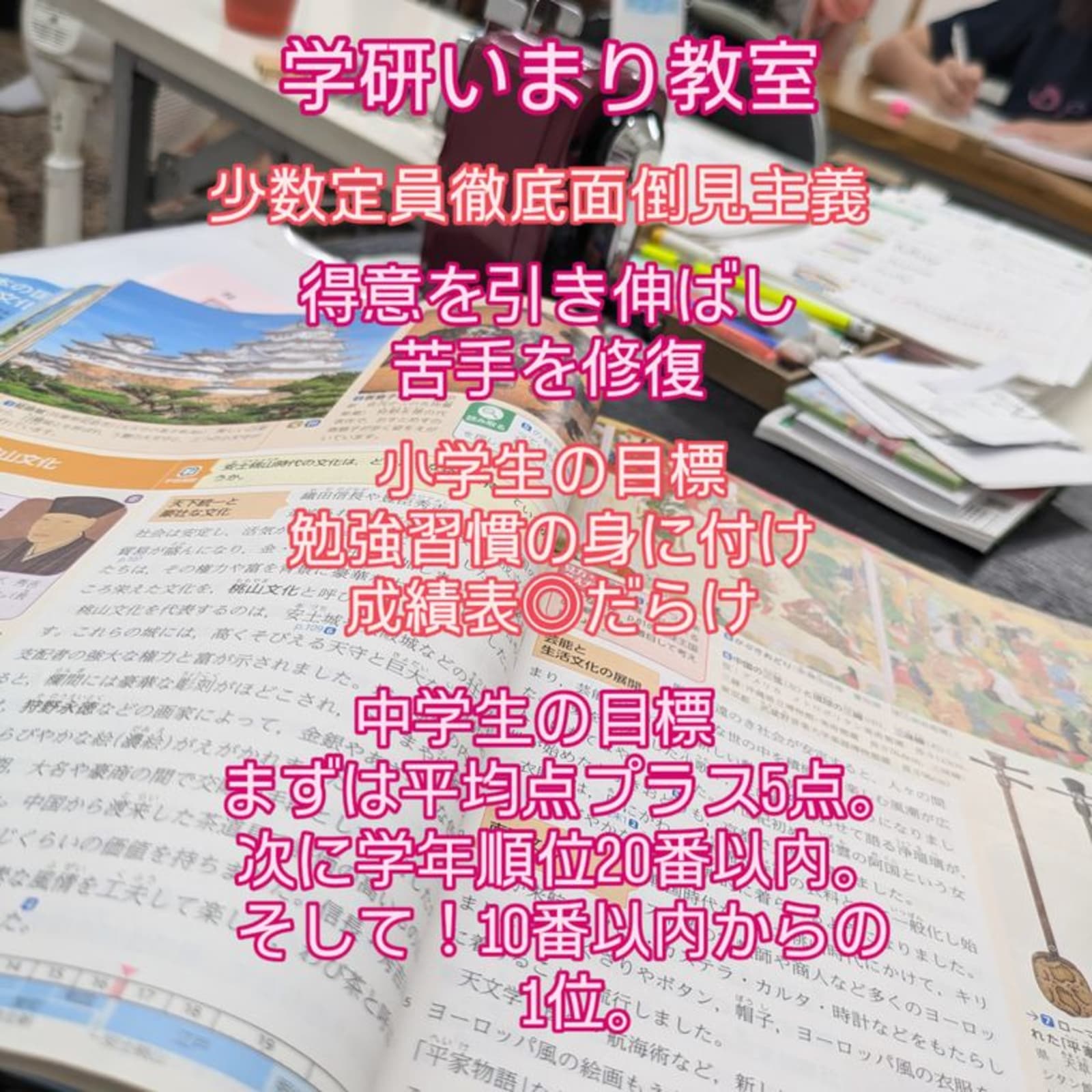 笑顔で学ぶいまり教室!1人1人の得意なとこ、苦手なとこを私がしっかりサポート致します! 学研いまり教室の前田です。 小中学生少数定員制の完全個別、 AI、タブレットを使わず、プリント、ホワイトボードを使い、生徒の表情を見ながらの授業です。 お子様の苦手ポイントを私が直接指導し、「できた!」から「得意!」に変えます。1人1人を直接指導しますので時に褒めて、時にはきつく叱ります。 タブレットが苦手な方、講師による直接指導がご希望の方は是非学研いまり教室にお越し下さい。 オモシロトーク炸裂!?のこの道15年のツルピカおじさんが待ってます! まずは無料体験授業にお越し下さい。学校、ご自宅でのお勉強のお悩み事をお聞かせ下さい。 おじさんAIが何とか致します! |