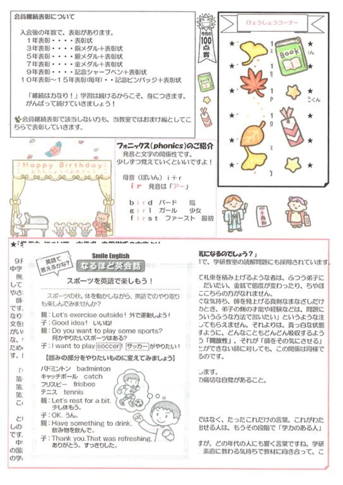 「認知能力+非認知能力=生きる力」を育む学研教室 未来を生き抜く力を子どもたちに! 秋のイベントが始まっています! イベント① 幼児入会金0円キャンペーン! 5,500円の入会金が0円に! 12/16まで! イベント② 無料体験学習受付中! 小学生・中学生 イベント③ 入学準備学習受付中! 幼児対象! 無料です! イベント④ W(ダブル)紹介キャンペーン! オリジナルスティック消しゴムプレゼント! 指導歴21年の指導者がお待ちしています。 お申し込みは黄色ボタンから! 直接のご連絡は、携帯電話のショートメールでお願いいたします。 火・金曜日は落合教室で、月・水曜日は祗園山本教室で指導中。 |