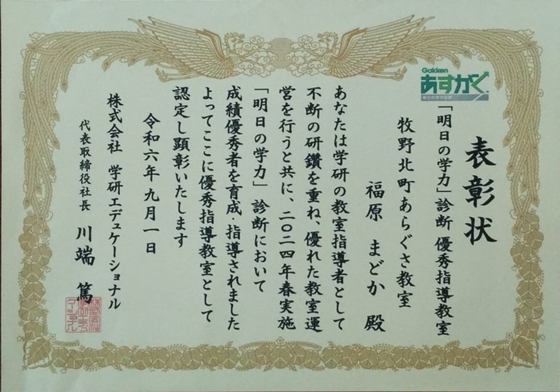 | 教室名 | 学研教室 学研牧野北町あらぐさ教室 |