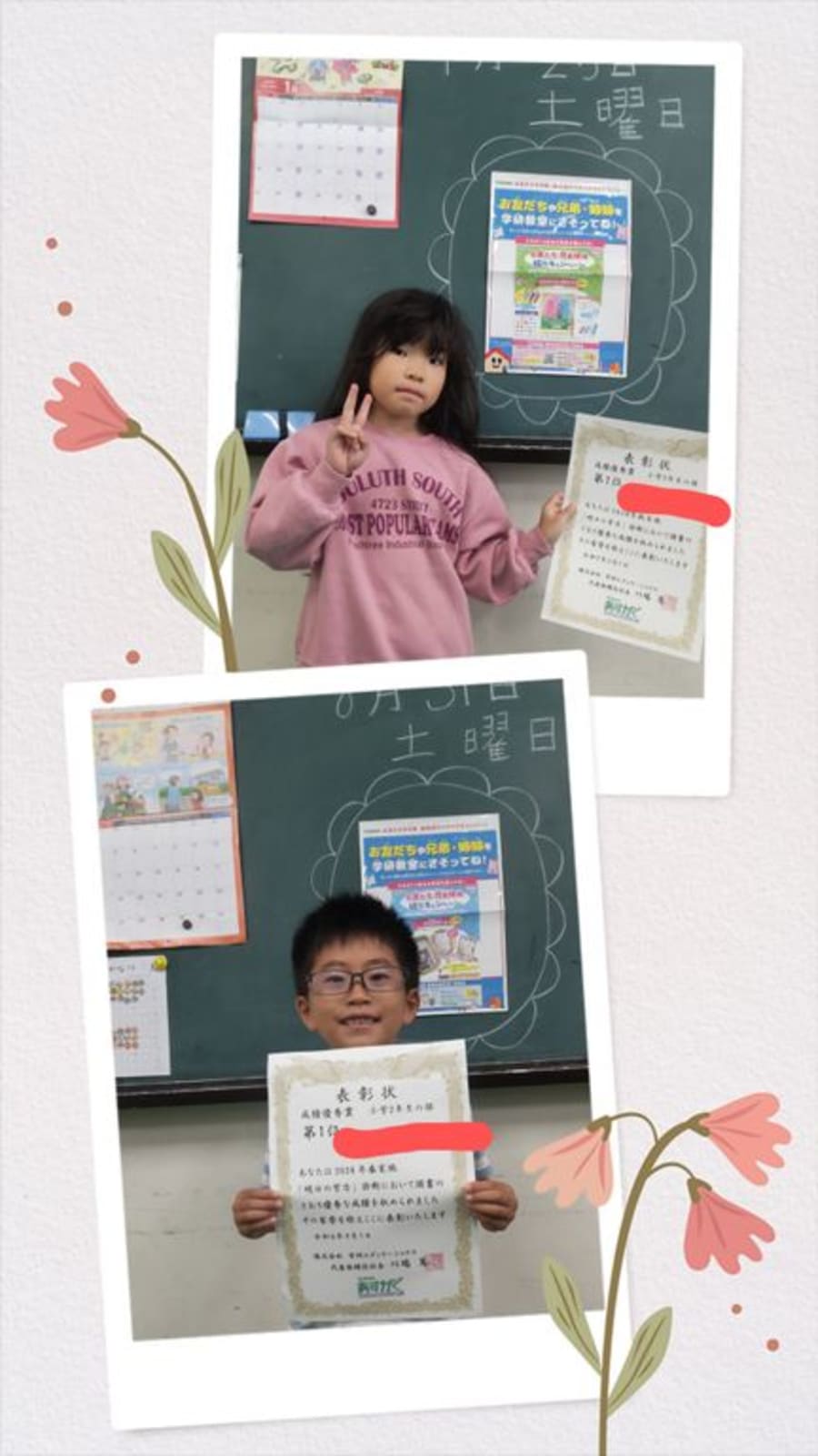 無料体験いつでも申込できます。090ー8531ー4348福原まで。 学習習慣を身につけたい!字を綺麗にしたい!そんなご相談をよくいただきます。 当教室は漢字担当の明美先生と算国英語担当のまどか先生で運営しています。 お子様にあった教材で、二人体制だから出来る丁寧な指導をします。 学習習慣はお子様が小さいほど早く身につきます。 年長さんは今から始める事で、小学校の準備ができます。 私は、勉強にはやる気が一番大事だと思っているので 子どもたちのやる気が出るような工夫をしたり、声がけを心掛けています。 小学生のうちに自学自習の姿勢を身につけられたら、一生ものの宝物になります。 一緒にお勉強始めてみませんか? ご連絡お待ちしております。 |