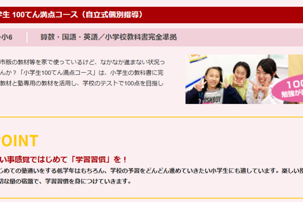 お子さまの成長や理解に合わせた指導コースです。 オリジナル教材を使い、お子さまの理解に合わせて学習を進める個別指導を行っています。 問題に取り組む過程を重視し、「考える力」を身につけて小学校...