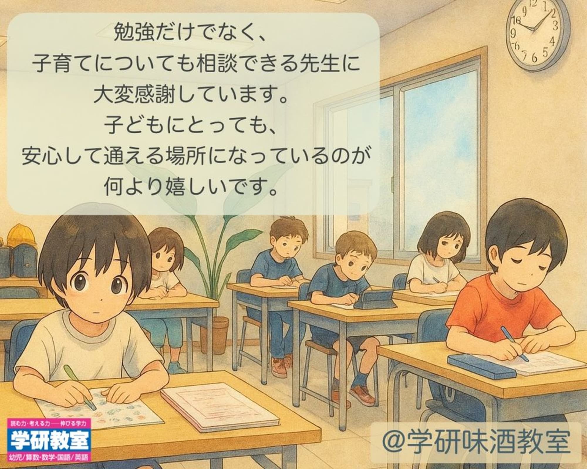 学習が難しくなる2学期!学研味酒教室で楽しく学ぼう♪まずは一週間の無料体験お待ちしております。 「味酒教室&味生教室ってどんな教室?」 ペアレントトレーニング実践!お子さまを褒めて伸ばす、学校帰りに直接通える教室です♪ 「100点がとれた」「学習習慣がついた」「楽しそうに通っている」「学研の宿題は嫌がらずにできています!」などのお言葉をいただいております。 勉強に苦手意識のある子どもの学び直し、先取り学習など、ひとりひとりに合った教材を使い学ぶことができます。 お気軽にお問い合わせください。 教室日時 味酒教室(月・火・水・木・金・土曜日15時~) 味生教室(月・火・木・金曜日14時40分~) |