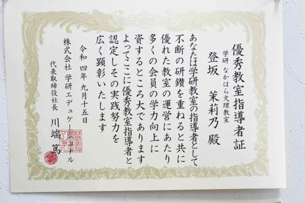 【優秀指導者認定教室】2学期からの学習をサポートします! ★★★満3歳~小4までの生徒さんを募集しています★★★ 現在、以下の通り開室しております。 月 14:30~16:00(残席2) 火・木 14:30~17:15(火残席1、木満席) 金 14:30~16:30(残席1) 土 14:00~15:30(残席3) ※大里西小の生徒さんは学校や学童から直接通えます! ※満3歳、年少さんは時間要相談 ほめて伸ばし自己肯定感を高めます!保護者様にも寄り添う教室! 開室時間内ならいつ来室してもOK!学習後は自習可能! 時間の縛りがないから、納得いくまで学習できます! 場所は文理学院中原校2階★セキュリティしっかり!駐車場が広く送迎しやすいですよ☆ |