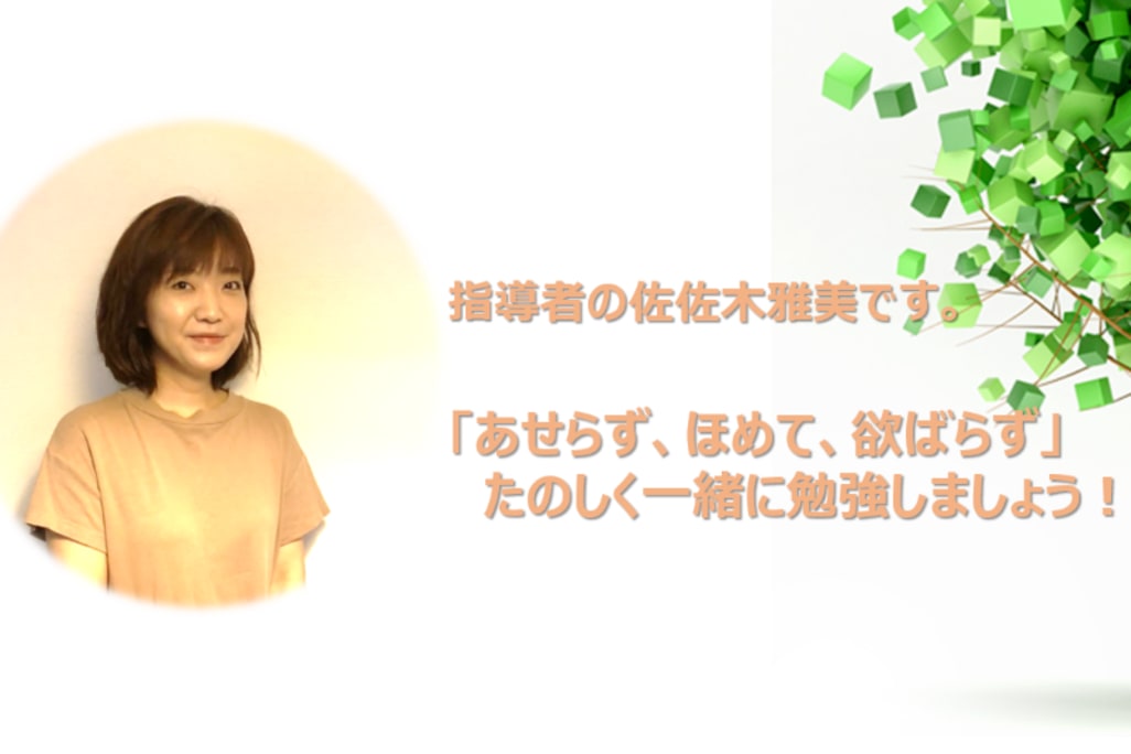 当教室では、学校の進度や学年にとらわれることなく、お子さんの学力や性格をしっかりつかんで、何が苦手なのか、どこが分からないのか、分からないところに戻って学習することもでき、お子さんの理解に応じて学習を進めてまいります。また、基礎学力の理解・定着を図るだけではなく、「思考力」「判断力」「表現力」をたくさん取り入れた教材を用いることで、学ぶ楽しさを感じながら「自ら考える力」など、これから役立つ力が身につける事ができます。できた喜びを自信に導き、勉強が楽しいと感じてもらえる教室にしたいと思います。二人の息子を持つ母親としても、学校の先生とは違った立場でお子さまをサポートしていきます。