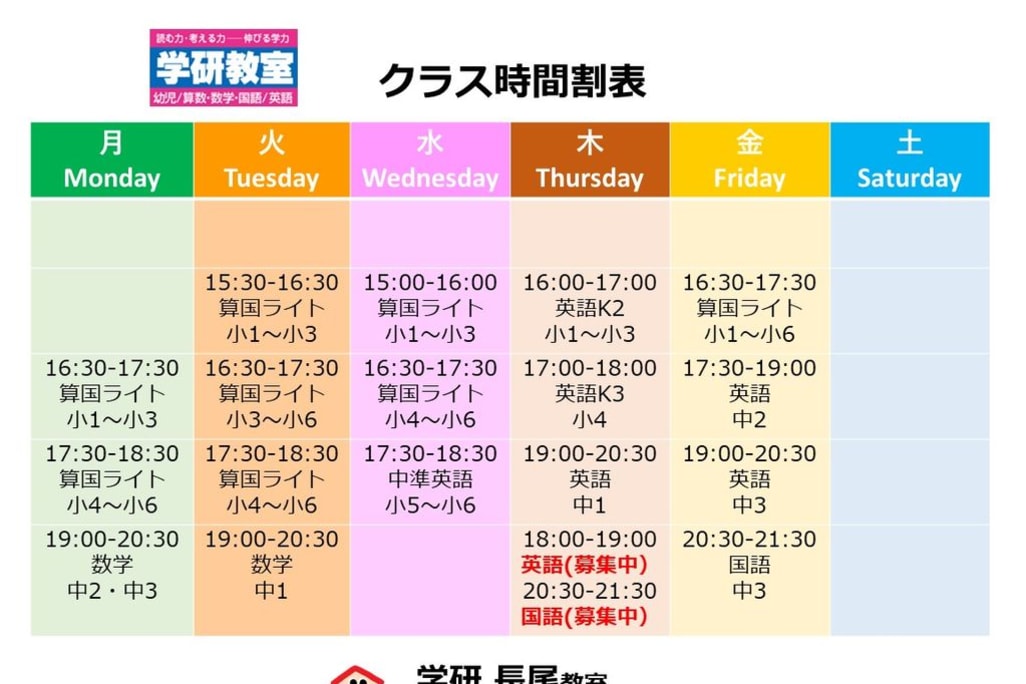 | 教室名 | 学研教室 学研長尾教室 |