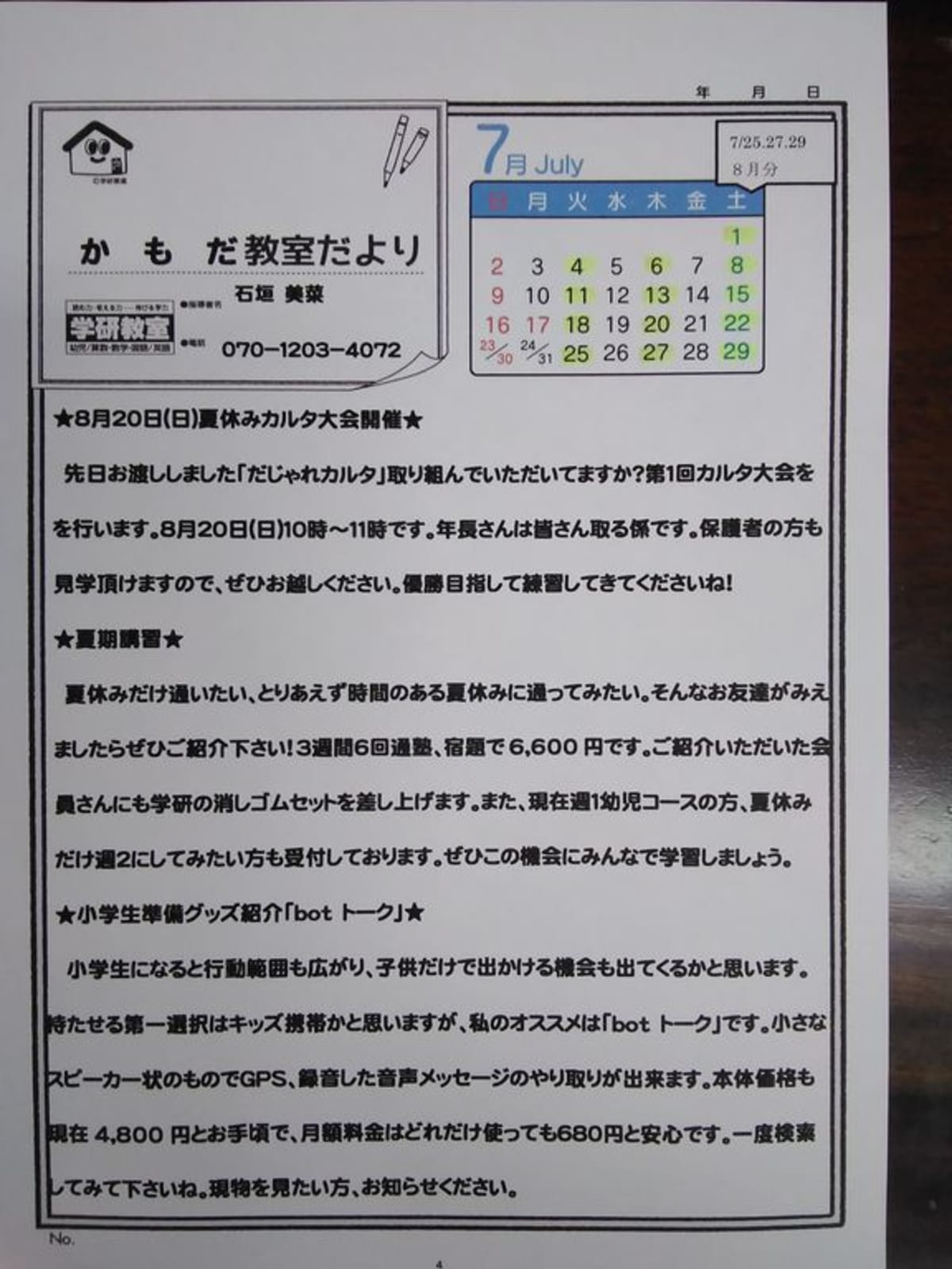 | 教室名 | 学研教室 学研かもだ教室 |