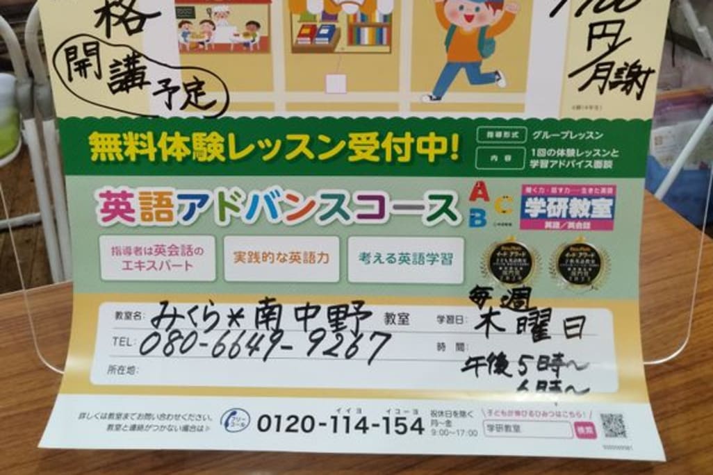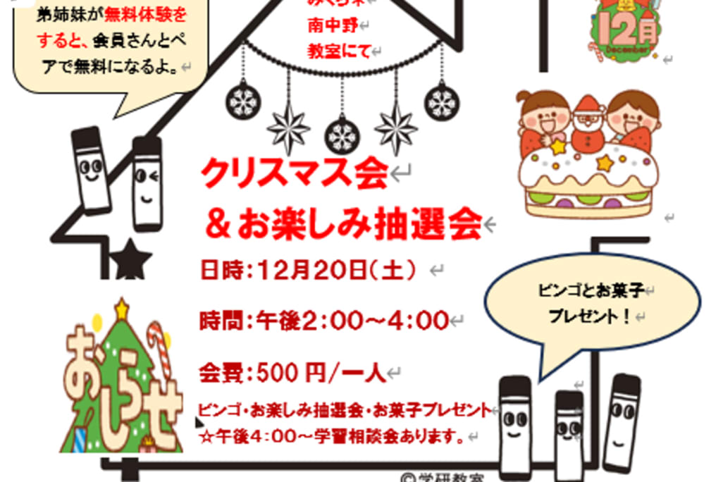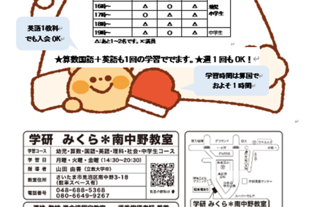 | 教室名 | 学研教室 学研みくら*南中野教室 |