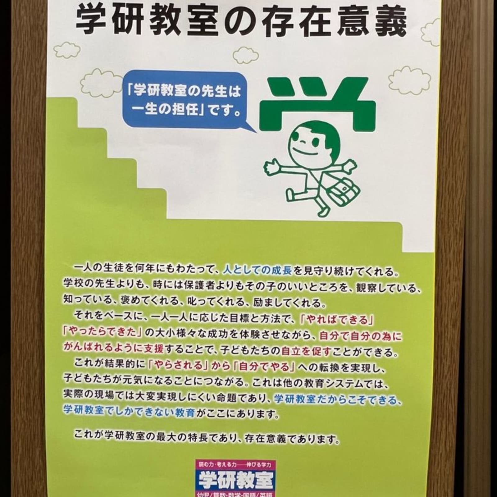 学研教室では、考える力を育てることを重視して、一人ひとりの子どもに合わせた教材で、考えることを楽しみながら繰り返し学習していきます。これからさらに勉強が難しくなってきます。どんどん学びたい子も、ゆっくり学んでいく子も、勉強が好きになるチャンスです。まずは無料体験学習を受けてみませんか。ご連絡お待ちしています。