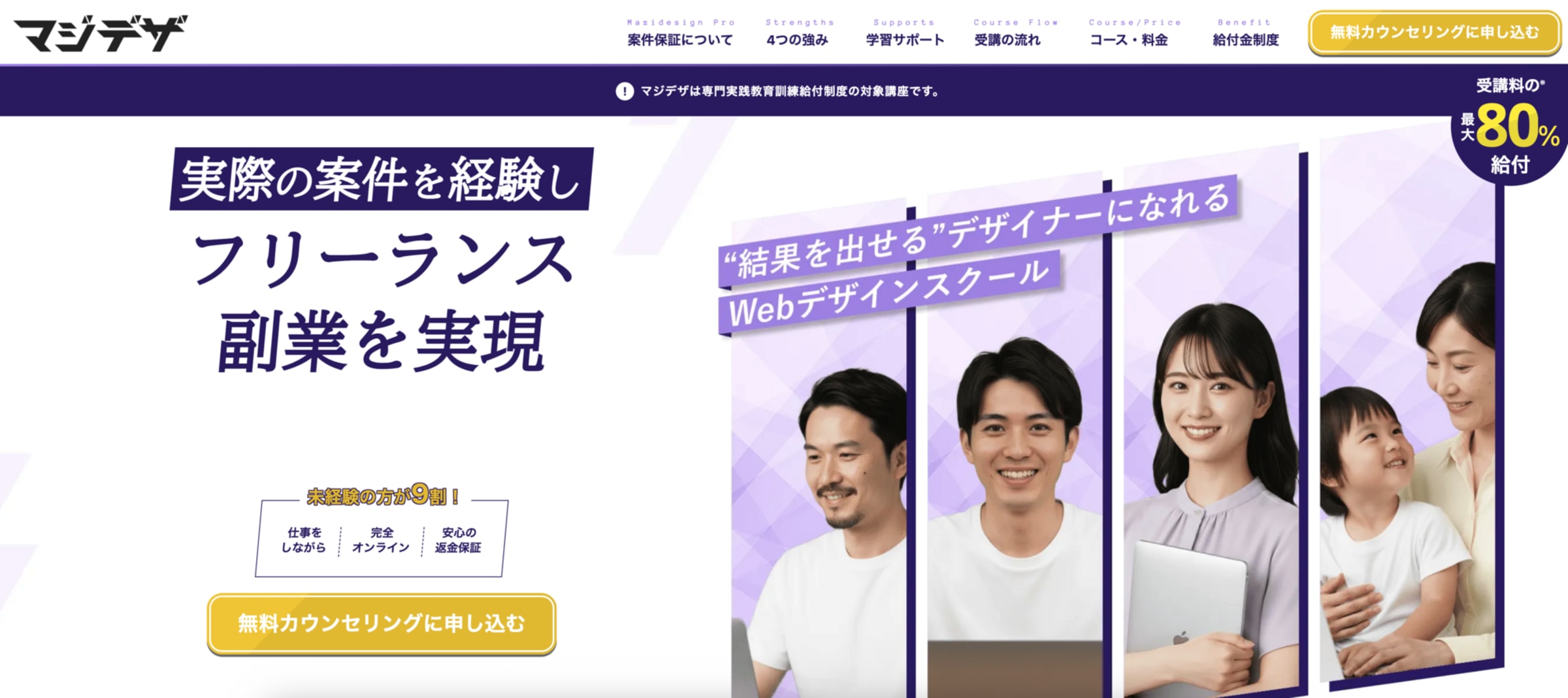 | 費用/体験授業 | 教育訓練給付金 、 10万円以下 、 返金制度あり 、 リスキリング補助金対象 |