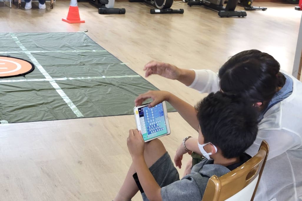 ②ドローンの操縦を覚えます。発達のステップに応じて無理なく無駄なく、お子さまのペースに合わせて操縦技術を覚えられます。
