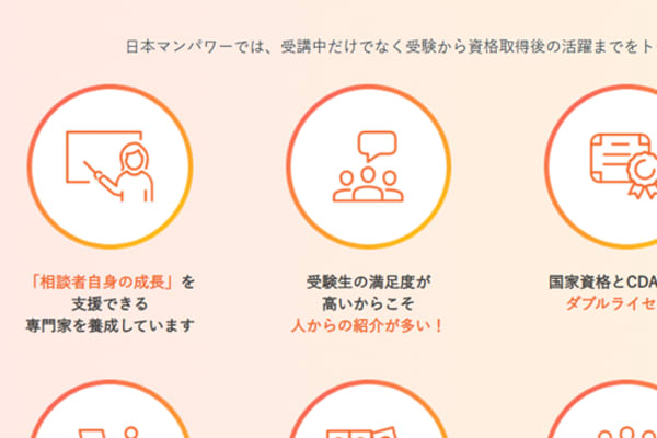 「日本マンパワー キャリアコンサルタント」は、厚生労働大臣認定のキャリアコンサルタント養成講座です。この講座を修了することで、国家資格であるキャリアコンサルタント試験の受験資格が得られます。