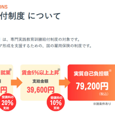 | 費用/体験授業 | 教育訓練給付金 、 学割あり |