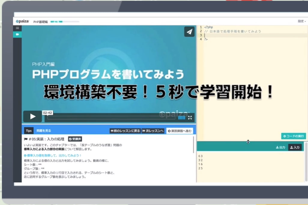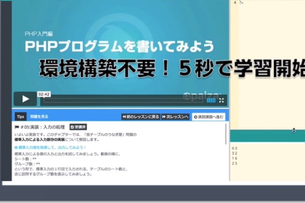 paizaラーニングは、ITやWebエンジニアを目指す方のためのリスキリング講座です。環境構築不要で、ブラウザ上でプログラミングができるため、初心者でも手軽に始められるのが特徴です。また、講座は3分程度の短い動画に分かれているため、隙間時間を活用して学習を進めることが可能です。学習内容は、Java、Python、Rubyなど多彩なプログラミング言語に対応しており、レベルに応じた課題で実践力を養えます。paizaラーニングのカリキュラム(授業内容)は?
