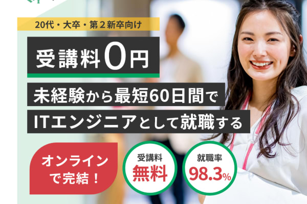 特徴としては、最短60日という短期間でのITエンジニア就職を目指せるカリキュラムが挙げられます。20代の未経験者を中心に、高い就職率98.3%(※2023年3月~2024年3月までの実績)を誇り、累計受講者数は3,738名以上に達しています。