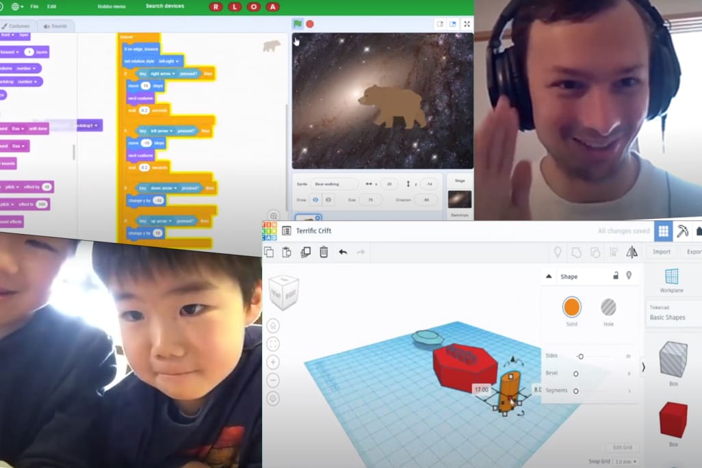Scratchを使ったプログラミングだけでなく、3Dモデリングや電子回路設計、UnityやPythonでアプリ制作まで学べます。