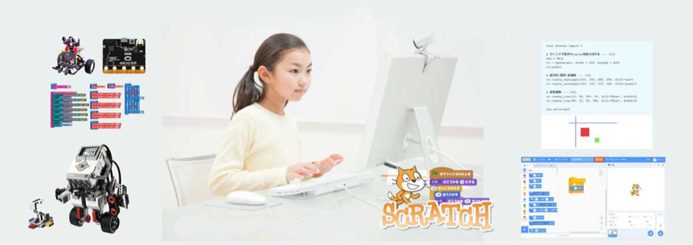 | 備考 | ・SCRACHやBASIC言語のプログラミングの学習は、後に学習するC言語やJava言語によるプログラミング学習に役立つように指導しています。 ・毎回の授業の内容や学習状況をメールや家庭連絡簿で毎回お知らせしています。 ・80分3回までの無料相談会・無料体験授業が受講できます。 ・多大なメニュー・学習項目からロボット組み立て・スクラッチ・Basicプログラミング・デスクトップ・ミュージックなど好きなものを選んで受講できます。 ご予約随時受付。 |