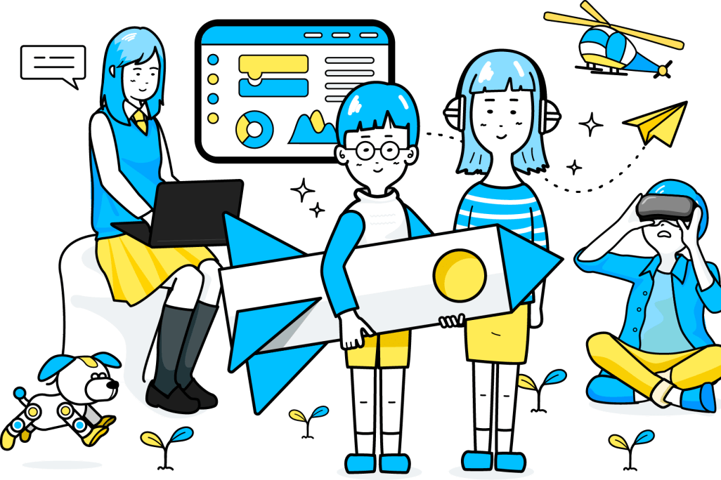 TechAcademyジュニアの教材を使い、プログラミングがどのようなものかを学び、同時に自分の考えたアイデアを具現化する力などを育みます。プログラミング学習を通じて、近な課題を解決するWebアプリケーションや自分がつくりたいゲームをつくることで、将来の可能性を育んでいきます。