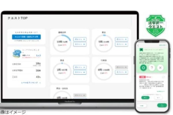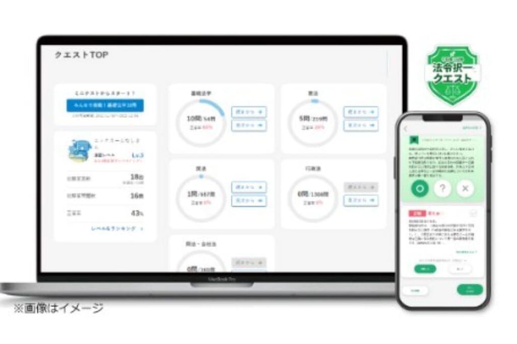 PCやスマートフォンから利用可能な「法令択一クエスト」では、重要テーマの基本的な知識を問う問題のみを厳選した「ここから問」を解くことができます。