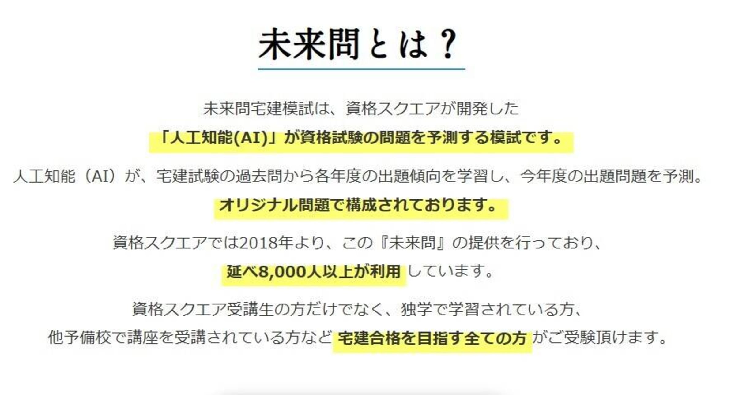 | スクール名 | 資格スクエア 未来問宅建模試 |