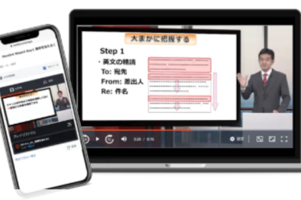 TOEIC満点講師のわかりやすい動画講座やスマホ1台で「読む・聞く・話す・書く」全て学習できる教材などが特長です。