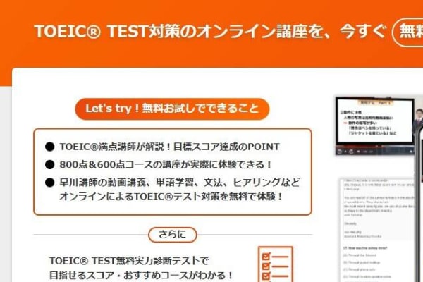 スタディング TOEIC講座では、実際の600点コース、800点コースで使われている講座を体験することができます。