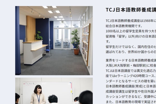 TCJ日本語教師養成講座は、日本語教師を目指す方々に向けて専門的な教育を提供するスクールです。長年にわたり培ってきたノウハウと実績を活かし、受講者が高品質な教育を受けられる環境を整えています。日本語教育の専門知識だけでなく、実践的な教授法や最新の教育動向を学ぶことができ、国際的な視野を持った日本語教師の育成を目指しています。公式サイトでは、多様なコースやサポート体制が紹介されており、受講者のニーズに合わせた学習プランを選択することが可能です。