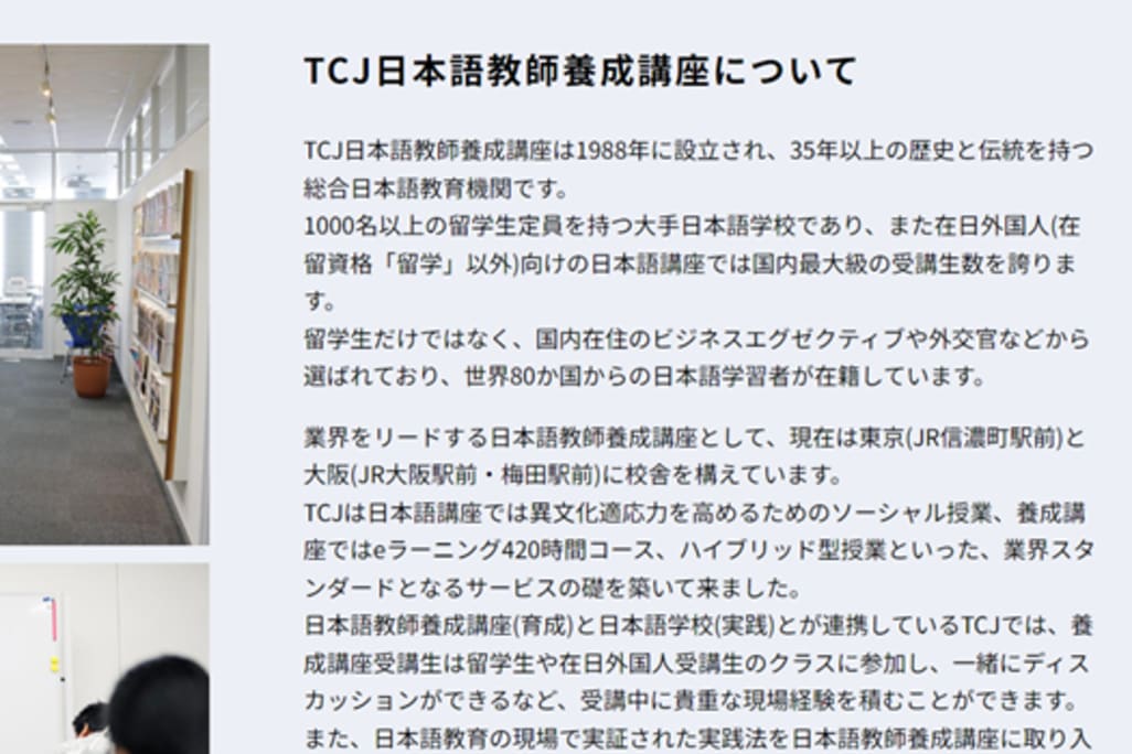 TCJは日本語学校を併設していて、留学生・就労者・生活者向けのオンライン日本語教育における豊富なノウハウをもっています。