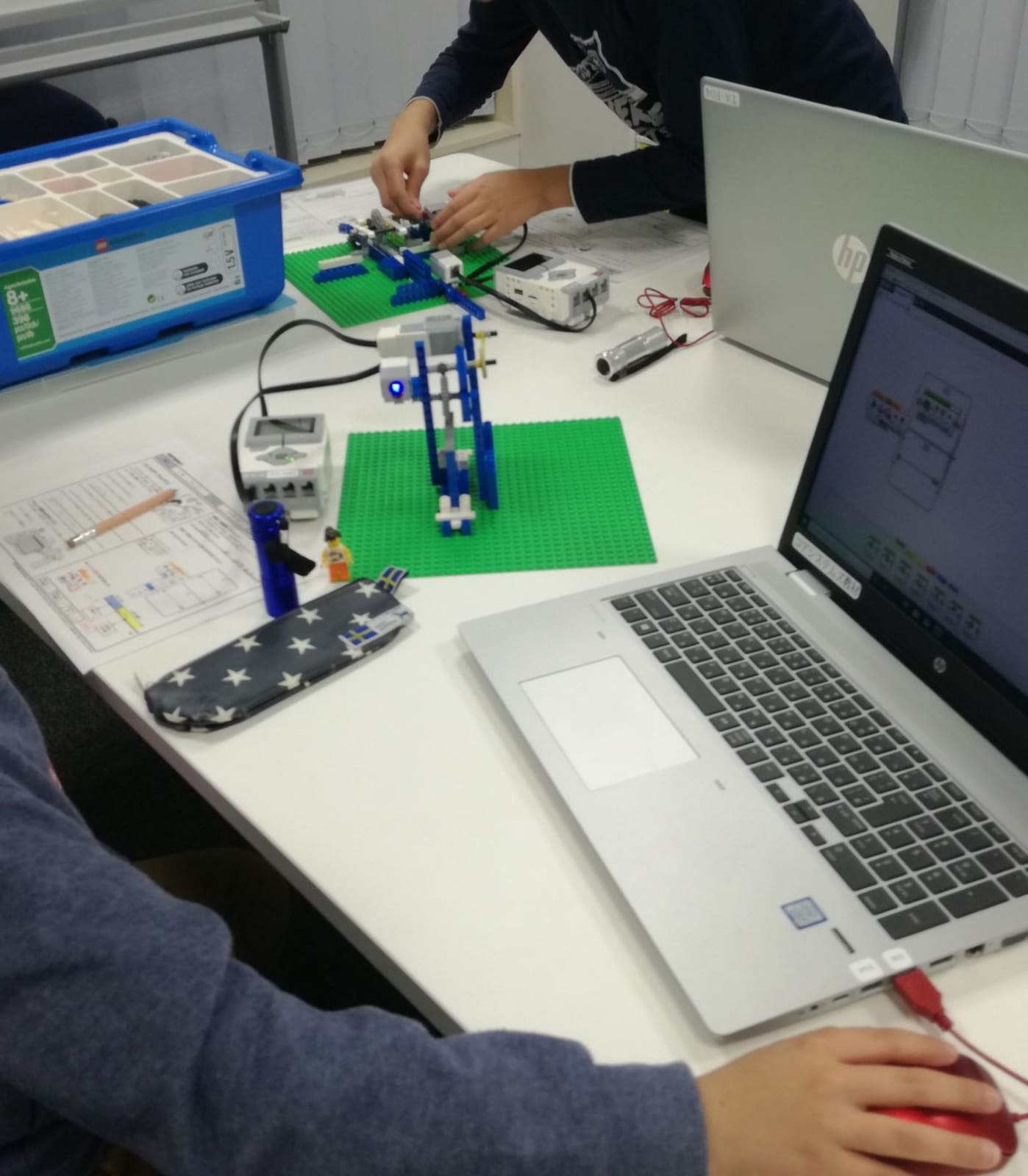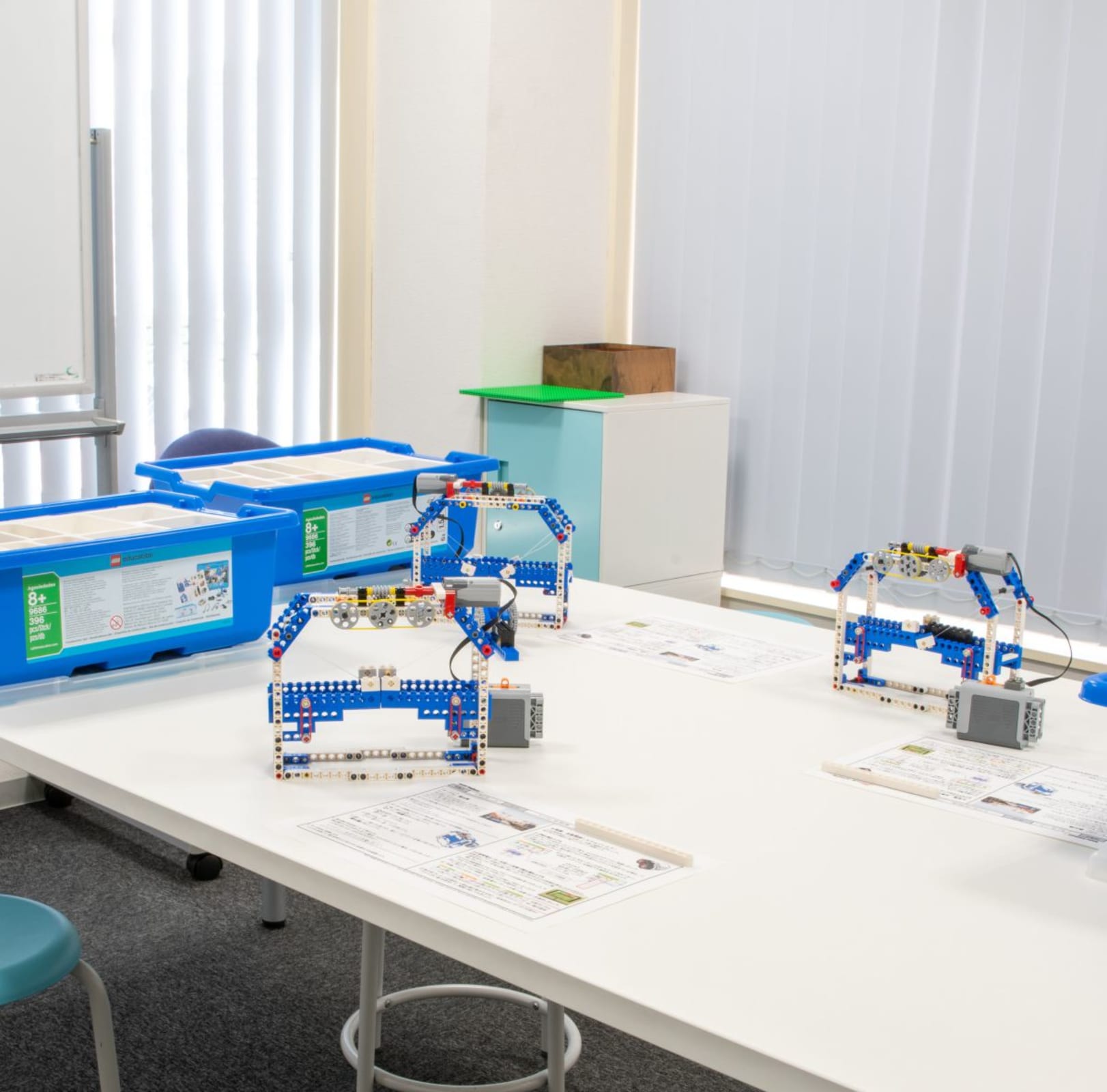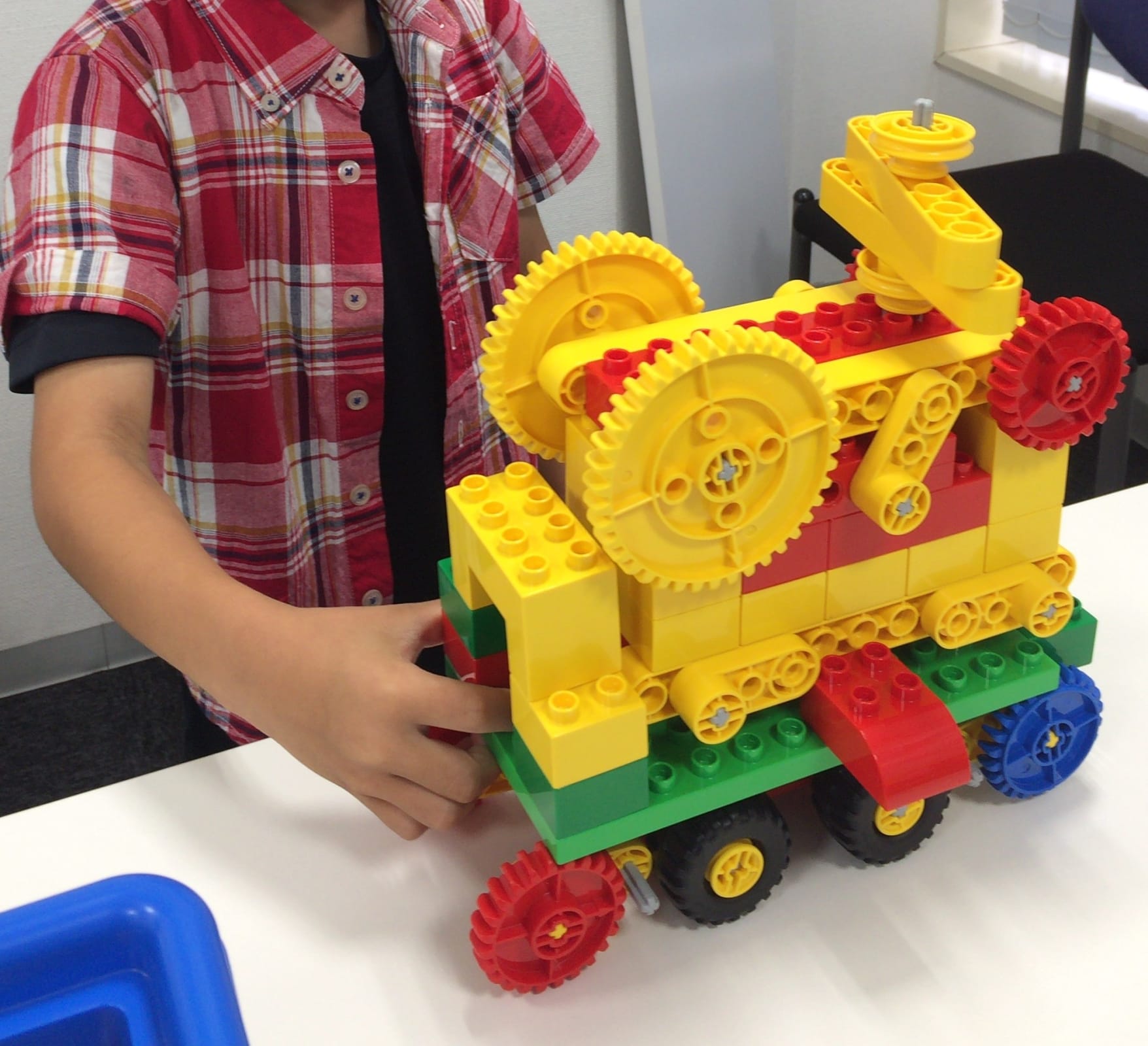 教育用レゴを組み立てながら滑車や車輪などの動きの仕組みを学びます