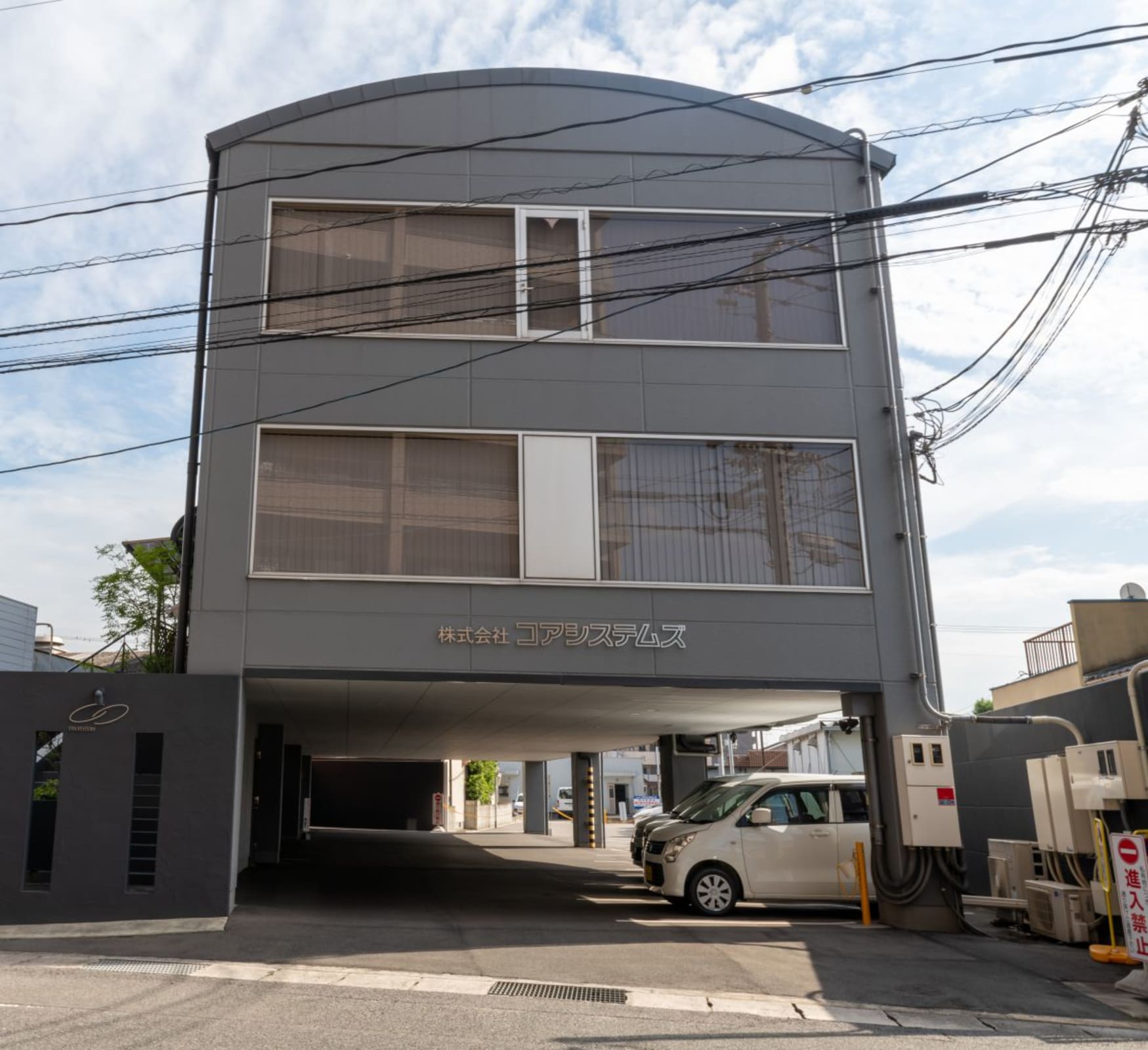 建物の1階が駐車場になっています。