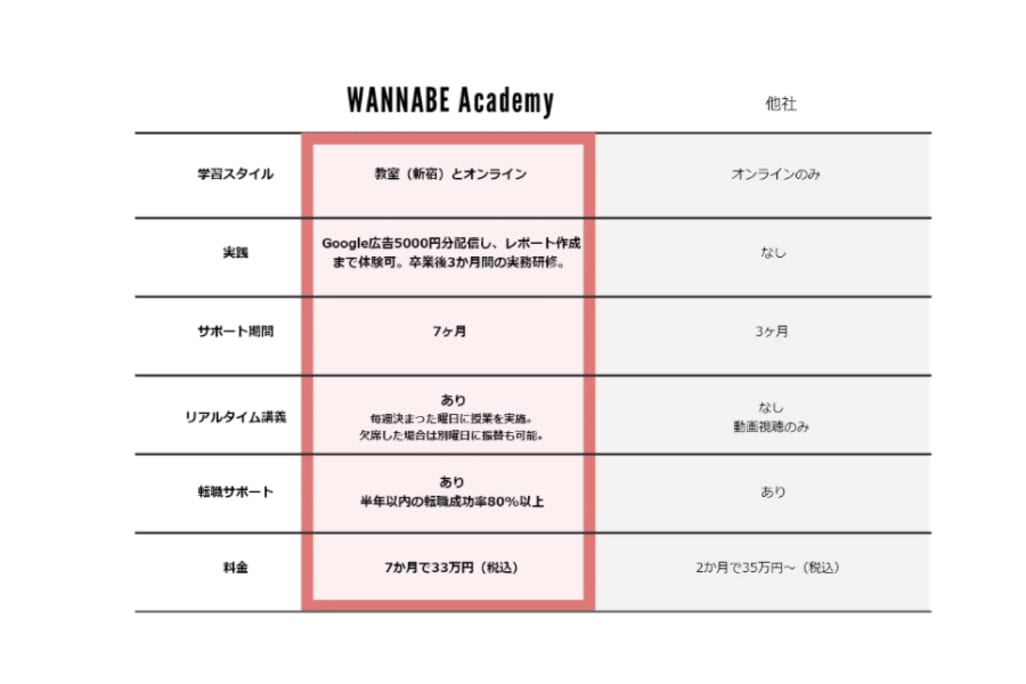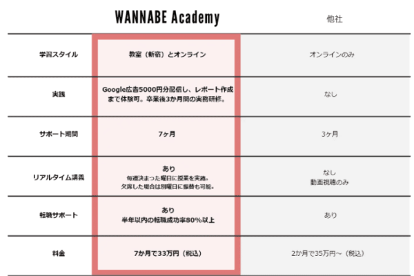 今回は、実務経験が積めるWebマーケティングスクール「ワナビーアカデミー」について詳しく解説しました。