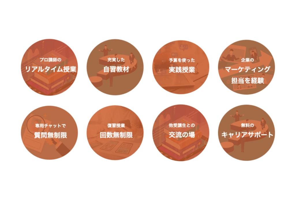 - 手厚いキャリア・副業支援:グループ会社である専門エージェント「WANNABE Career」や提携エージェントによる就職・転職サポートが充実しており、マーケティング職への内定率は93.4%(2022年7月データ)を誇ります。副業希望者には1.5万円の案件獲得保証制度もあります。