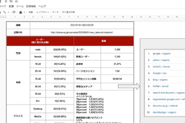 - Googleアナリティクスを使ったデータ分析