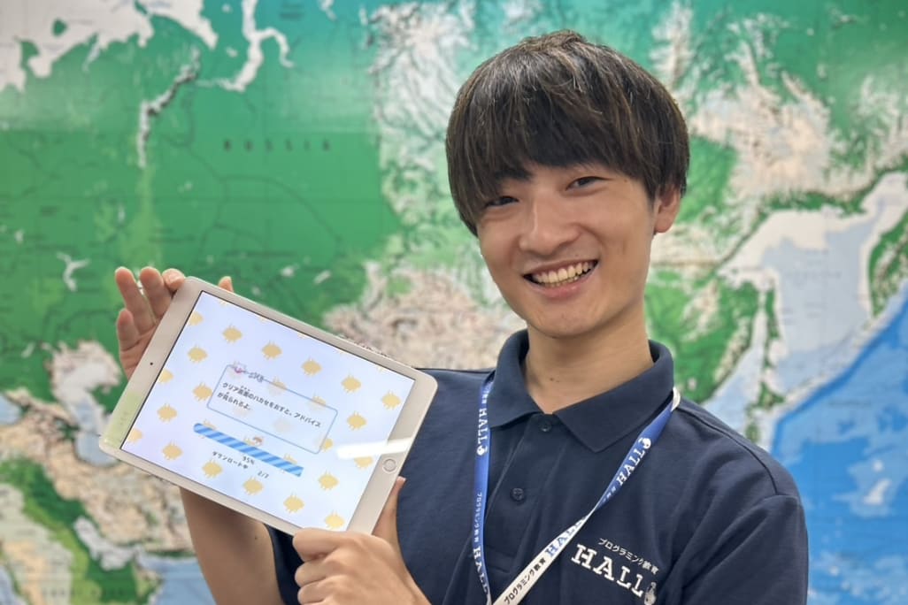 多くのプログラミング教室は大人数制や教材任せの学習スタイルが中心ですが、プログラミング教育HALLOでは一人ひとりに合わせた個別最適レッスンを導入しています。コーチが学習ペースや理解度を細かく把握し、適切なヒントやアドバイスを行うことで、子ども自身が「自分で考える力」を養えるのが特長です。つまずきやすいポイントは丁寧にサポートし、得意な部分はさらに伸ばせるので、初心者から経験者まで安心。自分に合ったペースで着実に力をつけられる環境だからこそ、無理なく楽しく学びを継続できます。