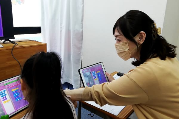 丁寧で明るく優しい先生でした。本人のペースに合わせて褒めて伸ばしてくれるのが良いと思います。クラスは3人までの少人数制で授業内容は個人個人で違うので、本人にあった内容でかつ分からないところがすぐ質問できるので良いと思いました。他のスクールと違ってヘッドホンをしなくていいので立ち耳の子供でも不快感がないです。ただ教材はiPadにしか対応してないので持ってない場合はレンタル(15000円/半年)するか購入します。購入してしまえば自宅でもログインして取り組めるのはいいと思いました。授業の最初にキーボードを取り付けてタイピングの練習ができるのも良いです。ビジュアルプログラミングが終了次第Pythonに移行できるのも良いと思います。通学路の範囲内であり、駅近という訳でもなく郊外という訳でもないので通いやすいです。とても良かったです。ただ学童も併設しているので静かな環境で取り組みたい方には不向き...