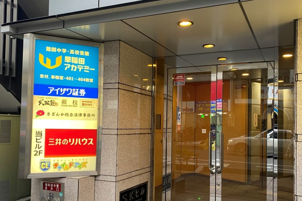 JR京浜東北線 JR京浜東北線蕨駅改札を出て右、東口のロータリーに出ます。正面に「マクドナルド蕨東口店」さんと「東武ストア」さんがございます。その間の東口駅前通り(マクドナルド蕨東口店さん側)を直進します。 一つ目の信号の横断歩道を直進方向に渡ると1階に「ソフトバンク」さんがあるビルがございます。 ビルを右手に直進すると「三井住友銀行」さんのATMがございます。その左隣の扉がビルの入り口です。 エレベーターか階段で2階にお上がりいただくと、黄色いガラス扉がございます。チャイルド・アイズ蕨駅前校・HALLOお教室の入り口です。 |