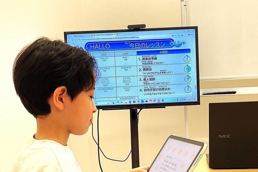 はい、もちろんです。ロールプレイング式で段階的にプログラミングの基礎を学んでいくので、初心者からでも安心して学べるカリキュラムになっております。また、iPadでレッスンを行うので、パソコンに苦手意識があるお子様でも取り組みやすいです。わからないところがあっても、HALLOのスタッフが丁寧にサポートしますので、安心してご受講ください。