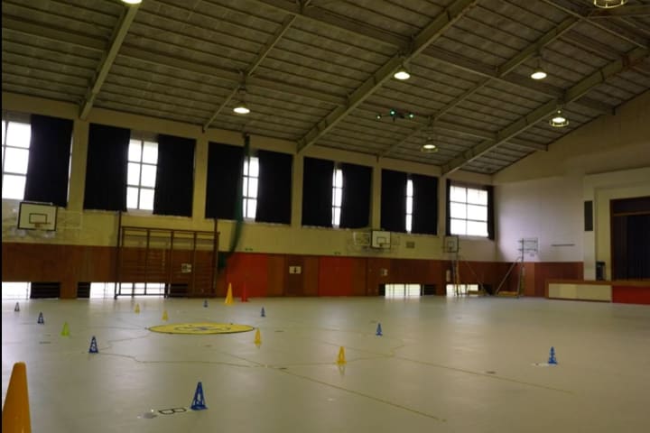 旧君津市立松丘小学校の施設をリノベーションしてスクールとしてつかっているため、運動場、体育館がドローン操縦に最適