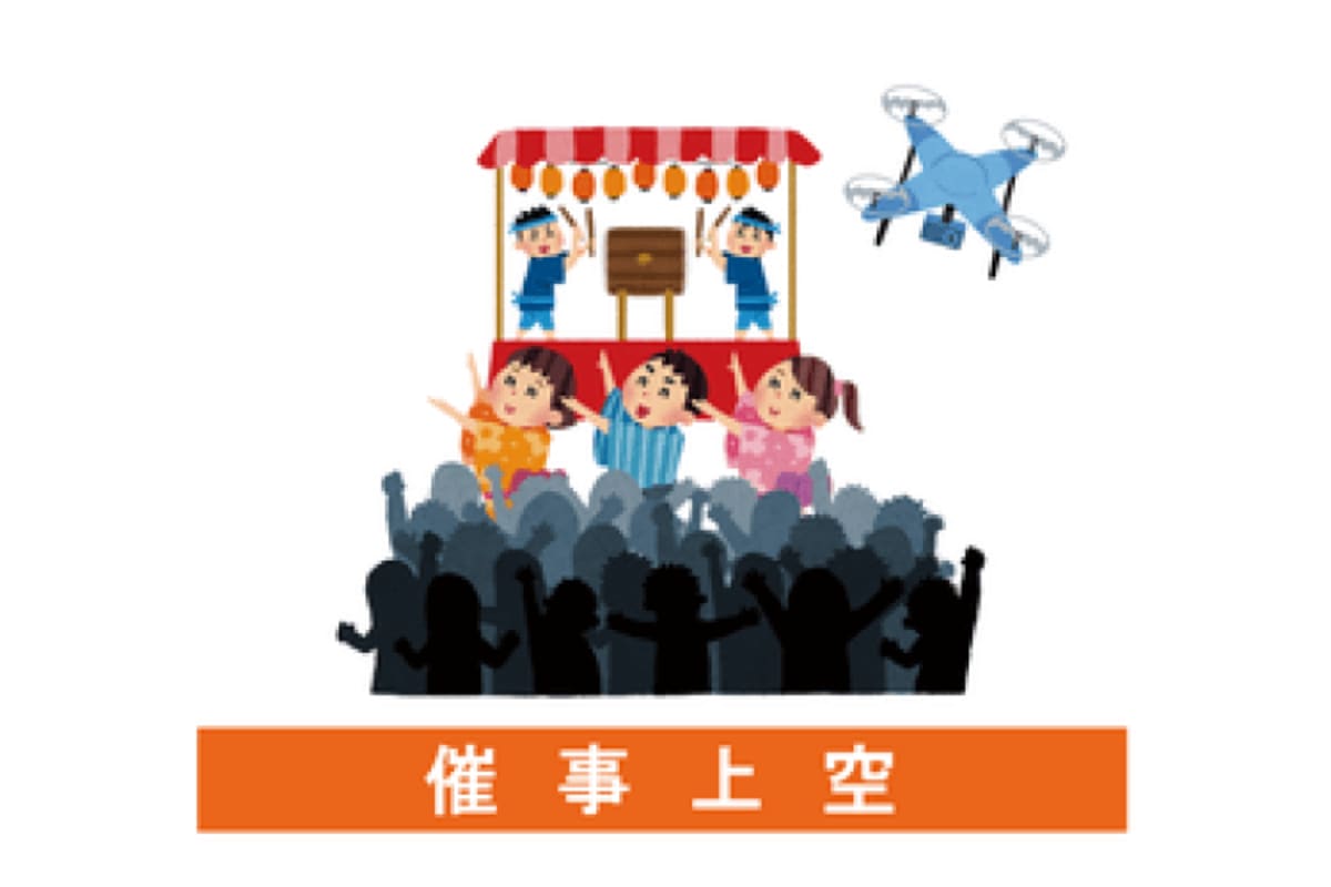 ドローン教習所仙台校の応用技能講習催事上空は、催事上空の基礎知識と関係法令を身につけるプログラムです。修了により応用技能ライセンス(ドローン検定公認)を発行し、催事上空での特殊な飛行に必要な専門知識と技術を習得できます。イベントや祭り等の人が集まる催事上空での安全な飛行を実現するための実践的なコースです。