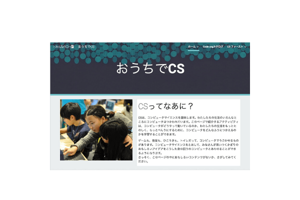 おうちでCSは無償のオンライン自習教材を紹介するウェブサイトです。Google が提供する CS First (英語)というScratchプログラミングを学ぶのコンテンツの一部を活用した「おうちでCS: プログラミングチュートリアル」、アメリカの教育系NPOであるCode.orgが提供する「Hour of Code」などのオンライン教材を取り上げるほか、「 エンジニアのお仕事を知ろう – おうちでCSオンラインセッション- 」と題し、 現役のエンジニアをオンラインセッションに招待してトークを予定しています。