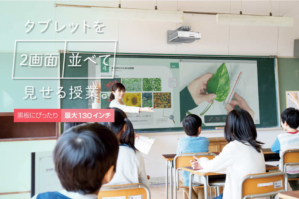 最大130インチ投影。学校の黒板にぴったりなウルトラワイドプロジェクター「ワイード」。学校授業での使用に特化したプロジェクターが学びの可能性を広げていきます。