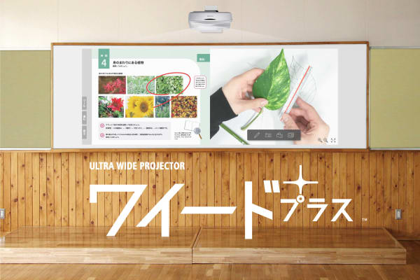 ワイード プラスは、これまでの画面サイズ(4:3)が、ちょうど二つ並ぶワイドな画面サイズで投影できる学校向けプロジェクターです。 2系統の同時出力ができるので、デジタル教科書と実物投影機を並べて一度に見せるなど、ワイドな画面を活かした使い方が可能です。 板書との相性も抜群のワイドなプロジェクターが、学びの可能性を広げていきます。2021年、おかげさまで累計導入台数4000台を突破しました。