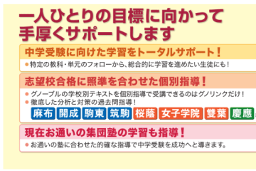 個別指導グノリンク 四谷校の指導対象は多岐にわたっています。中学受験を目指す小学生、内部進学に向けて勉強したい小学生、大学受験を目指す中高一貫校の中学生、そして大学受験を目指すすべての高校生・既卒生が対象です。各学年のニーズに応じた指導を個別指導グノリンク 四谷校で提供しており、それぞれの生徒の目標や現在の学習状況に合わせて、柔軟なカリキュラムを構成することが可能です。