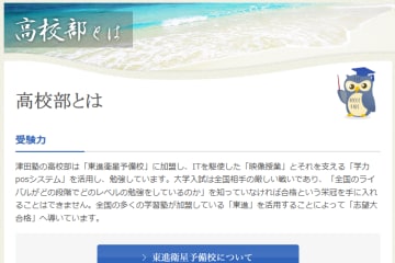 津田塾の高校部は「東進衛星予備校」に加盟し、ITを駆使した「映像授業」とそれを支える「学力posシステム」を活用し、勉強しています。大学入試は全国相手の厳しい戦いであり、「全国のライバルがどの段階でどのレベルの勉強をしているのか」を知っていなければ合格という栄冠を手に入れることはできません。全国の多くの学習塾が加盟している「東進」を活用することによって「志望大合格」へ導いています。